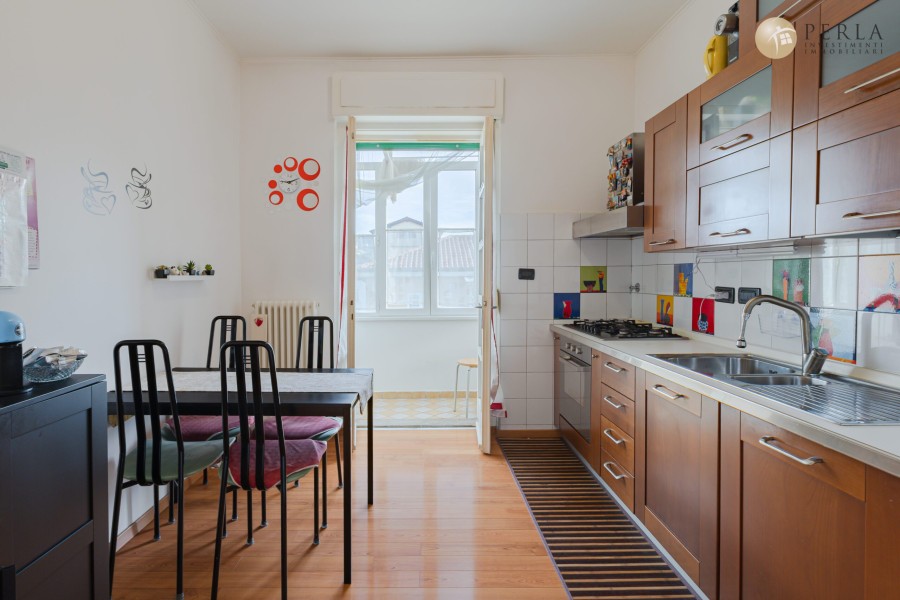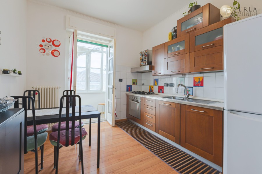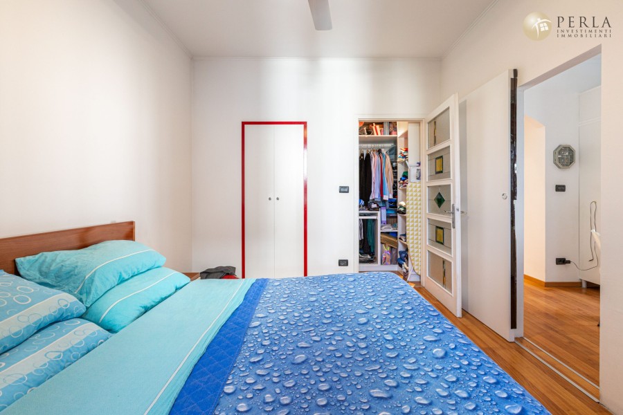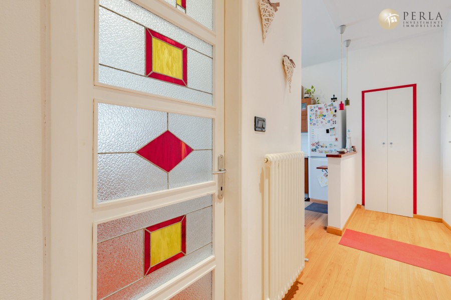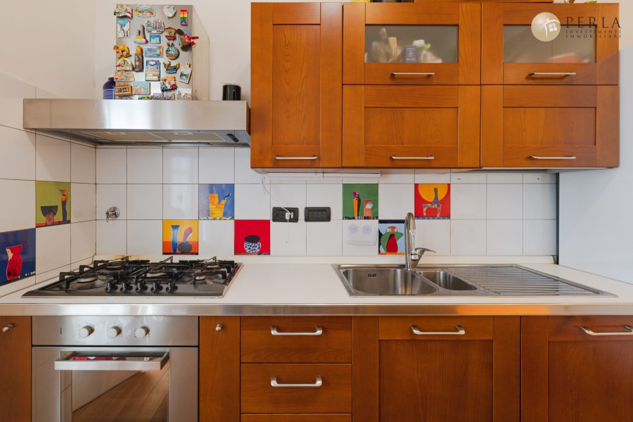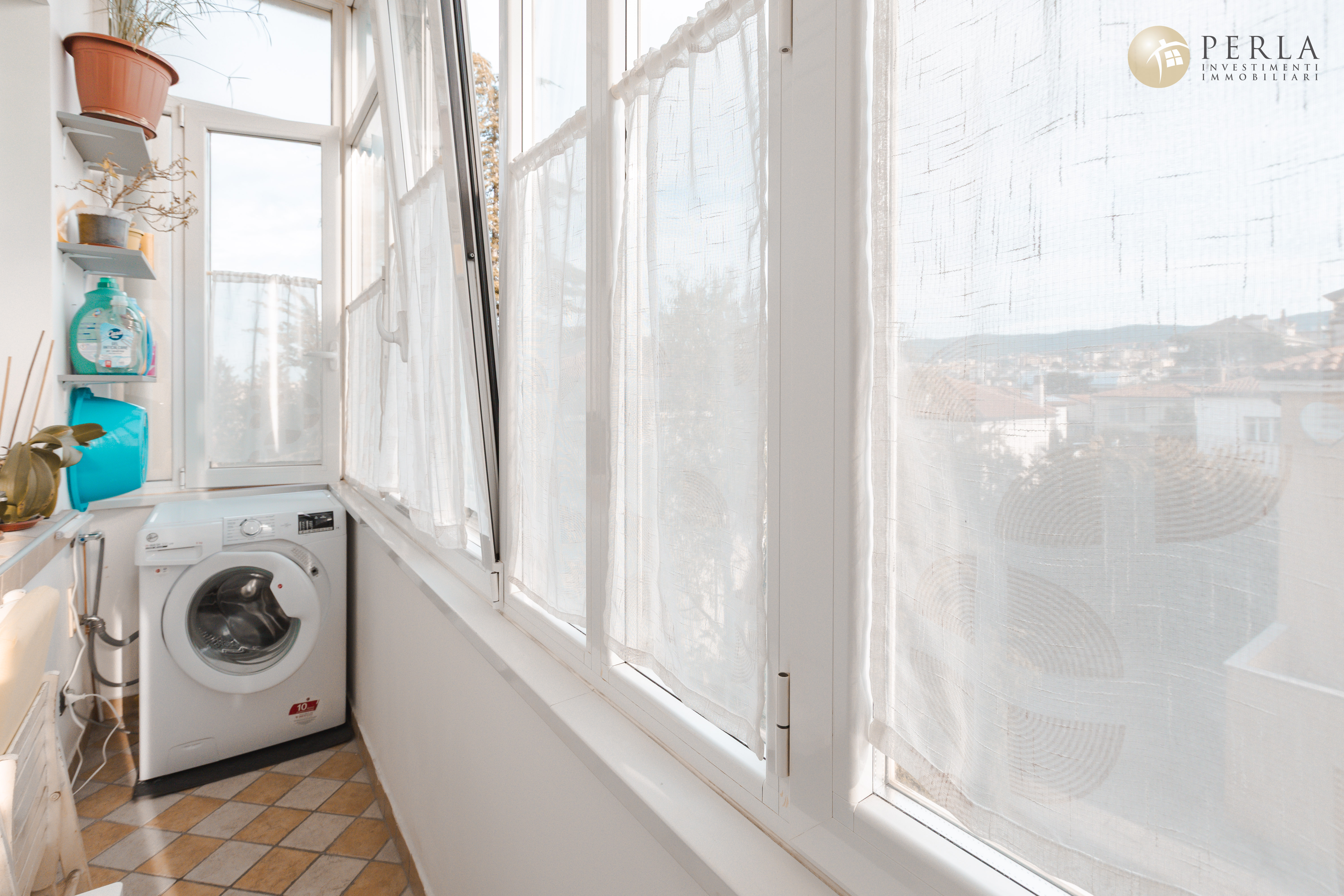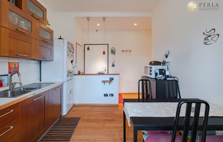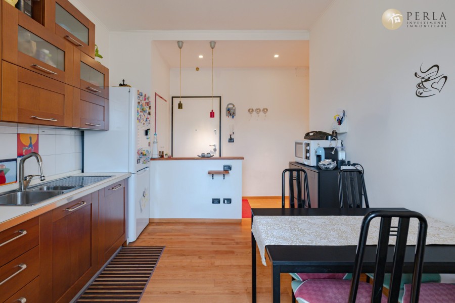 L’appartamento si compone di un pratico atrio d’ingresso, una cucina abitabile con accesso a una comoda veranda attrezzata con lavatrice, un ampio soggiorno, una camera matrimoniale con doppia cabina armadio e un bagno finestrato con box doccia.