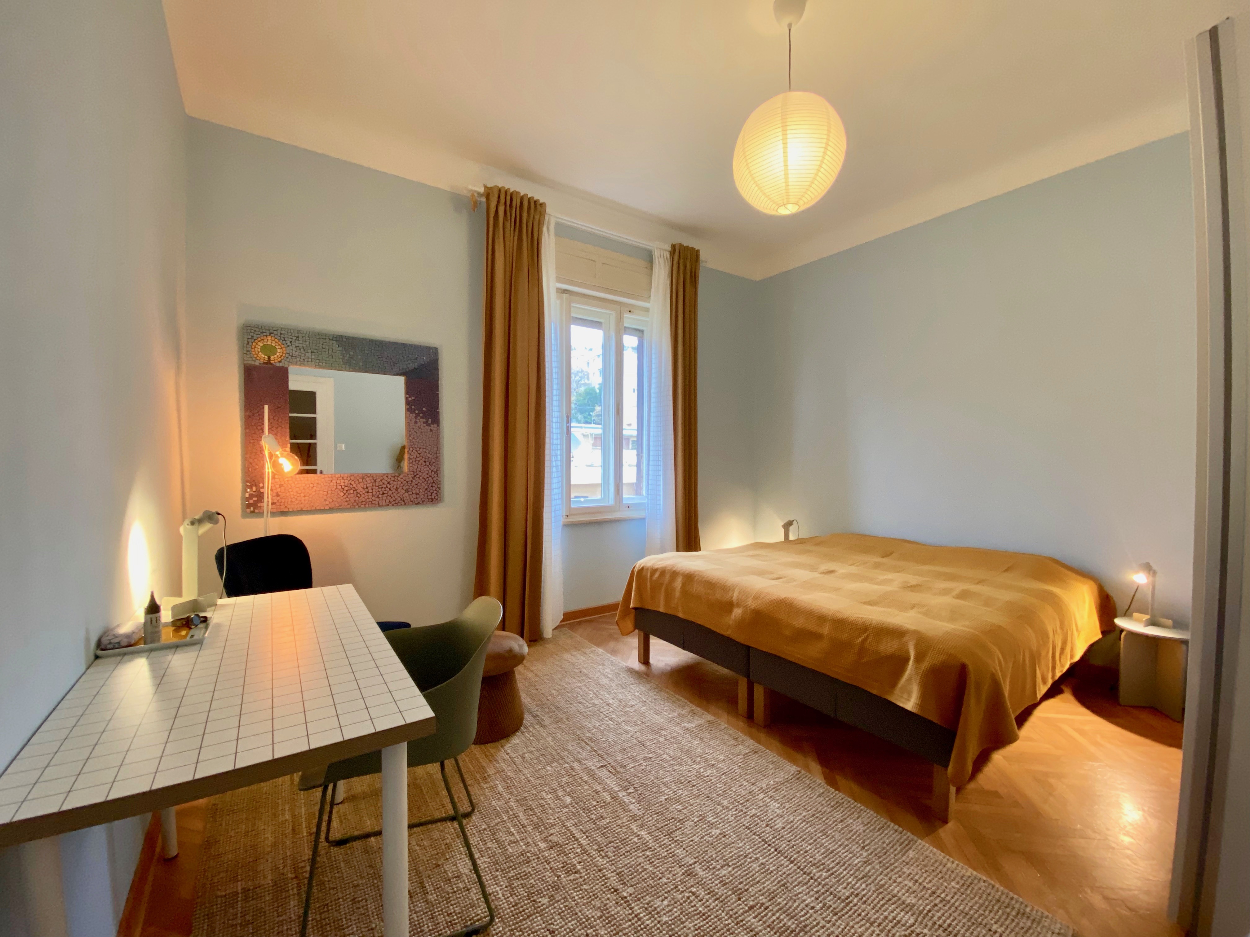 La camera proposta è ampia, luminosa e pensata per offrire un ambiente sereno dove studiare, lavorare e rilassarsi. L’appartamento si trova al quarto piano senza ascensore; nelle immediate vicinanze si trovano supermercati come Lidl, NaturaSì e Aldi, farmacie, servizi essenziali e la fermata degli autobus.